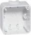 Aufputz-Gehäuse für alle COMPACTA-Geräte ohne Zugentlastung, für senkrechte und waagerechte Montage, inklusive Abdeckschieber Artikel-Nr. 29.xx und 1 Kabeleinführung Artikel-Nr. 26.xx 1fach, Abmessung B 60 x L 60 x H 37 mm