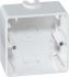 Aufputz-Gehäuse mit geschlossener Bodenplatte für senkrechte und waagerechte Montage, inklusive Abdeckschieber Artikel-Nr. 29.xx und 1 Kabeleinführung Artikel-Nr. 26.xx, 1fach, Abmessung B 81 x L 81 x H 42 mm. Nicht mit Kombi-Rahmen DIALOG exclusiv zu verwenden!