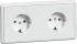 Doppel-Steckdose SCHUKO mit Steckklemmen 2-polig, 16 A 250 V, mit Verbindungsklemmen nach VDE 0620, mit voller Abdeckplatte für Einzelmontage, geeignet für 2 Winkel- oder Flächenstecker. Besonders geeignet zur zeitsparenden Installation in 2fach-Kanaldosen und 2fach-Aufputzgehäusen.