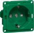 Steckdose SCHUKO mit Steckklemmen, mit grüner Abdeckung und grünem Sockel 16 A 250 V, mit Verbindungsklemmen nach VDE 0602, mit Frontbefestigung, mit Abdeckung