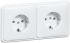 Doppel-Steckdose SCHUKO mit Steckklemmen 2-polig, 16 A 250 V, mit Verbindungsklemmen nach VDE 0620, mit voller Abdeckplatte für Einzelmontage. Besonders geeignet zur zeitsparenden Installation in 2fach-Kanaldosen.