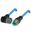 Verbindungskabel M12-Buchse gewinkelt auf M12-Stecker gerade A-kodiert, 2-polig, PUR-Kabel blau, NAMUR