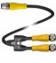 Y-Verbindungskabel M12-Stecker gelb gerade A-kodiert 4-polig auf 2x M12-Buchse gelb gerade A-kodiert 4-polig, 3x PUR-Kabel schweißspritzerbeständig schwarz, UL-zugelassen, schleppkettentauglich, torsionsgeeignet