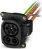 CHARX connect universal, Fahrzeug-Ladedose, zum Laden mit Wechselstrom (AC) und mit Gleichstrom (DC), CCS Typ 2, IEC 62196-2, IEC 62196-3, 250 A / 1000 V (DC), 32 A / 250 V (AC), Einzeladern, Länge: 2 m, Verriegelungsaktuator: 24 V, 4-polig, Vorder- und Rückwandmontage, M6, Gehäuse: schwarz, Für die DC- und AC-Kontakte ist eine Schutzkappe im Lieferumfang enthalten.