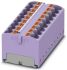 Verteilerblock, intern gebrückt, Nennspannung: 450 V, Nennstrom: 32 A, Anzahl der Anschlüsse: 18, Anschlussart: Push-in-Anschluss, Querschnitt: 0,2 mm² - 6 mm²,: aufrasten auf Tragschienenadapter, Direktmontage mit Flansch, Fliegend, Farbe: violett