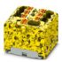 Verteilerblock, intern gebrückt, Nennspannung: 450 V, Nennstrom: 17,5 A, Anzahl der Anschlüsse: 7, Anschlussart: Push-in-Anschluss, Abgriff, Querschnitt: 0,14 mm² - 2,5 mm², Sammelanschluss, Bemessungsquerschnitt: 4 mm², Querschnitt: 0,2 mm² - 6 mm²,: aufrasten auf Tragschienenadapter, Direktmontage mit Flansch, Fliegend, Farbe: schwarz/gelb