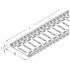Kabelrinne gelocht, Kopfform geeignet zum formschlüssigen Einrasten von Deckeln, mit Längs- und Quersicken zur Reduzierung der Bodendurchbiegung, geprüft nach DIN EN 61537, einschließlich elektr. Leitfähigkeit