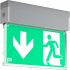 Leuchte zur Rettungswegkennzeichnung. Gehäuse Aluminium-Strangpressprofil pulverbeschichtet. 4 Rettungszeichenfolien und 1 weiße Folie inklusive Befestigungs-Pins zum Aufstecken beigelegt. Universal Befestigungssatz für Decken- und Wandanbau. Betriebsgerät integriert. Zum Anschluss an zentrale Sicherheitsstromversorgung geeignet.