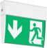 Leuchte zur Rettungswegkennzeichnung. Gehäuse Aluminium-Strangpressprofil pulverbeschichtet. Zum Einlegen für ein- und zweiseitige Verwendung sind 4 Rettungszeichenfolien und 1 weiße Folie beigelegt. Universal Befestigungssatz für Decken- und Wandanbau. Betriebsgerät integriert. Zum Anschluss an zentrale Sicherheitsstromversorgung geeignet. Mit Überwachungsbaustein AC-Control für LUXIFAIR Zentralbatterie-Anlagen.
