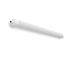 Designorientierte Feuchtraumleuchte. Zur Rettungswegbeleuchtung. Seitenteile Kunststoff (Polycarbonat) weiß, schlagzäh. Diffusor aus Kunststoff (Polycarbonat) opal, schlagzäh. Diffusor extrudiert, innenprismatisch und UV-beständig. Lichtverteilung symmetrisch. Homogene Ausleuchtung. Rückwärtiger Lichtanteil zur Deckenaufhellung. Deckenmontagebügel aus Edelstahl und Triangel-Bügel für Pendelmontage im Lieferumfang enthalten. Betriebsgerät gekapselt, integriert und fest verbunden mit dem Diffusor und Seitenteil. Komfortable Leitungseinführung über Kabelverschraubungen. Einfache Installation durch Drehverschluss auf beiden Seiten. Zum Anschluss an zentrale Sicherheitsstromversorgung geeignet. Leuchte mit integrierter Durchgangsverdrahtung für das Aneinanderreihen von weiteren Leuchten. Leuchte mit begrenzter Oberflächentemperatur nach DIN EN 60598-2-24 zur Verwendung in einer Umgebung, in der eine Ablagerung von leitfähigem Staub auf der Leuchte erwartet werden kann. Zugelassen für den Einsatz in der Lebensmittel- und Getränkeindustrie.