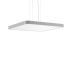 Dekorative quadratische LED Pendel-Flächenleuchte. Flacher nahtloser Rahmen Aluminium-Strangpressprofil pulverbeschichtet. Abdeckung Stahlblech pulverbeschichtet. Baldachin Aluminium pulverbeschichtet. Direkter Lichtaustritt über Diffusor aus vergilbungsfreiem Kunststoff (PMMA) opal.Indirekter Lichtaustritt über flächenbündigen Diffusor aus Kunststoff satiniert. LED Backlight-Technologie für eine homogene Ausleuchtung der gesamten lichtabgebenden Fläche. Lichtaustritt direkt 70%, indirekt 30%. 4-Punkt Stahlseilabhängung stufenlos höhenverstellbar. Einfache Montage mit transparenter, kürzbarer Pendelleitung und Baldachin mit Magnetbefestigung. Betriebsgerät integriert. DALI dimmbar. Für Durchgangsverdrahtung geeignet.