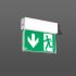 Leuchte zur Rettungswegkennzeichnung. Gehäuse Aluminium-Strangpressprofil pulverbeschichtet. 4 Rettungszeichenfolien und 1 weiße Folie inklusive Befestigungs-Pins zum Aufstecken beigelegt. Universal Befestigungssatz für Decken- und Wandanbau. Betriebsgeräte integriert. Einzelbatteriesystem mit automatischem Selbsttest. Mit Programmierschnittstelle NFC.