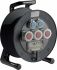 Spezialgummi-Kabeltrommel mit dwd-Steckdosen 3xC516, 2xSchutzkontaktsteckdose, FI-Schalter, SI-Automaten.