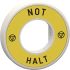 Harmony XB5 Baureihe. Beleuchtbares Schild für Not-Aus/Not-Halt-Taster der Baureihen XB4, XB5 und XB7. Die Beleuchtung ist 2-farbig, LEDs weiß/rot, Farbwechsel erfolgt bei Betätigung. Versorgungsspannung 24V ACDC. Beschriftung NOT-HALT. In Kunststoffausführung. Stoßfestigkeit IK03. Umgebungstemperatur von -40 bis +70 Grad C. Schutzart bis IP69K, Internationale Standards IEC, UL, CSA, EAC, CE Kennzeichen.