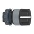 Wahlschalter mit Drehkopf aus Kunststoff als Frontelement und 22mm Einbaumaß, Baureihe Harmony XB5. Farbe des Wahlschalters ist schwarz. Der Betätiger hat 3 Stellungen. Die Farbe des Außenrings ist grau. Die modularen Harmony Baureihen mit 22mm Einbaumaß kombinieren einfache Installation, Effizienz, modernes Design, Flexibilität mit höchster Robustheit. IP-Schutzklassen bis IP69K und Umgebungstemperaturen von -40°C bis +70°C. Produktstandards gem. EN/IEC 60947-5-1, EN/IEC 60947-5-4, CSA C22.2 No 14, UL 508, EN/IEC 60947-1, JIS C 4520. Zertifizierungen nach DNV, GL, UL gelistet, RINA, BV, CSA, LROS (Lloyds register of shipping). Produktstandards gem. EN/IEC 60947-5-1, EN/IEC 60947-5-4, CSA C22.2 No 14, UL 508, EN/IEC 60947-1, JIS C 4520.