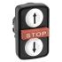 Frontelement für Dreifachdrucktaster Harmony XB5. Front weiß/rot/weiß, Blende Kunststoff, Pfeil nach oben/STOP/Pfeil nach unten. Drucktaster, 2 flach, 1 mittig vorstehend STOP, weiß Pfeil nach oben, weiß Pfeil nach unten, rot STOP. Abmessung (BxHxT) 30x50x35 mm, Montagedurchmesser 22 mm, Gewicht 0,023 kg. Es lässt sich einfach in einen Ausschnitt mit einem Durchmesser von 22 mm einbauen und mit einem Bund und Kontaktblöcken montieren, um eine Vielzahl von Funktionen zu erfüllen. Mechanische Lebensdauer 1000000 Zyklen. Kopfform rechteckig, standard. Mit hoher Vibrationsfestigkeut und chemischer Beständigkeit, Umgebungstemperatur -40 bis +70 Grad C. Zertifizierungen nach BV, CSA, RINA, LROS (Lloyds register of shipping), DNV, GL, UL gelistet. Produktstandards gem. EN/IEC 60947-5-4, UL 508, EN/IEC 60947-5-1, CSA C22.2 No 14, EN/IEC 60947-1, JIS C 4520.