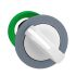 Wahlschalter aus Kunststoff als Frontelement und 30mm Einbaumaß, Baureihe Harmony XB5F für flachen Einbau. Farbe des Wahlschalters ist weiss. Der Betätiger hat 2 Stellungen. Die Farbe des Außenrings ist grau. Die modularen Harmony Baureihen mit 30mm Einbaumaß kombinieren einfache Installation, Effizienz, modernes Design, Flexibilität mit höchster Robustheit. IP-Schutzklassen bis IP69K und Umgebungstemperaturen von -40°C bis +70°C. Produktstandards gem. EN/IEC 60947-5-1, EN/IEC 60947-5-4, CSA C22.2 No 14, UL 508, EN/IEC 60947-1, JIS C 4520. Zertifizierungen nach DNV, GL, UL gelistet, RINA, BV, CSA, LROS (Lloyds register of shipping). Produktstandards gem. EN/IEC 60947-5-1, EN/IEC 60947-5-4, CSA C22.2 No 14, UL 508, EN/IEC 60947-1, JIS C 4520.
