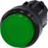 Leuchtdrucktaster, 22 mm, rund, Kunststoff, grün, Druckknopf, hoch tastend Leuchtdrucktaster SIRIUS ACT zur Schaltung und Steuerung elektrischer Verbraucher. Unter dem Markennamen SIRIUS ACT bietet Siemens ein einzigartiges Portfolio an Befehls- und Meldegeräten mit weltweiten Produkt-Zulassungen in drei modernen Designreihen aus robustem Echtmetall und hochwertigem Kunststoff.Das innovative Aufschnappkonzept vereinfacht die Montage so weit, dass dafür nur eine Hand und kein Spezialwerkzeug erforderlich ist. Als Montagebohrungen genügen nutfreie Löcher, da bereits ein 100%iger Verdrehschutz integriert ist.Dank der durchgängig hohen Schutzart sind die robusten Geräte industrietauglich und für den Außeneinsatz geeignet. Sogar die Reinigung mit Hochdruckstrahl ist möglich. Weder Staub, Öle noch aggressive Laugen können den zuverlässigen Betrieb stören.Neben der Standardverdrahtung können die meisten Geräte auch über PROFINET, AS-Interface oder IO-Link an die Steuerung angebunden werden. Damit reduzieren Sie Ihren Verdrahtungsaufwand, minimieren Fehlerquellen und gewinnen mehr Flexibilität.Komfortabel unterstützt der grafische Online-Konfigurator bei Auswahl und Bestellung von Einzelgeräten, Gehäusen und Beschriftungen. Umfangreiche Dokumentation (z.B. Handbuch, 3D-Daten, Anschlussdiagramm) ist verfügbar. Lieferbare Ausführungen: mehrere Farben, beleuchtet/unbeleuchtet, mit/ohne Beschriftung, verrastende/tastende Betätigung, verschiedene Druckknopf- und Frontringhöhen. Hinweis: Einzelgerät, Halter und Module bitte extra bestellen. SIRIUS ACT - Performance in Action beim Befehlen und Melden. Einfach montiert, einfach stark, einfach perfekt.