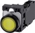 Leuchtdrucktaster, 22 mm, rund, Kunststoff, gelb, Druckknopf, flach, tastend, mit Halter, 1S+1Ö, LED-Modul mit integrierter LED AC/DC 24V, Schraubanschluss Leuchtdrucktaster SIRIUS ACT zur Schaltung und Steuerung elektrischer Verbraucher. Unter dem Markennamen SIRIUS ACT bietet Siemens ein einzigartiges Portfolio an Befehls- und Meldegeräten mit weltweiten Produkt-Zulassungen in drei modernen Designreihen aus robustem Echtmetall und hochwertigem Kunststoff.Das innovative Aufschnappkonzept vereinfacht die Montage so weit, dass dafür nur eine Hand und kein Spezialwerkzeug erforderlich ist. Als Montagebohrungen genügen nutfreie Löcher, da bereits ein 100%iger Verdrehschutz integriert ist.Dank der durchgängig hohen Schutzart sind die robusten Geräte industrietauglich und für den Außeneinsatz geeignet. Sogar die Reinigung mit Hochdruckstrahl ist möglich. Weder Staub, Öle noch aggressive Laugen können den zuverlässigen Betrieb stören.Neben der Standardverdrahtung können die meisten Geräte auch über PROFINET, AS-Interface oder IO-Link an die Steuerung angebunden werden. Damit reduzieren Sie Ihren Verdrahtungsaufwand, minimieren Fehlerquellen und gewinnen mehr Flexibilität.Komfortabel unterstützt der grafische Online-Konfigurator bei Auswahl und Bestellung von Einzelgeräten, Gehäusen und Beschriftungen. Umfangreiche Dokumentation (z.B. Handbuch, 3D-Daten, Anschlussdiagramm) ist verfügbar. Lieferbare Ausführungen: mehrere Farben, beleuchtet/unbeleuchtet, mit/ohne Beschriftung, verrastende/tastende Betätigung, verschiedene Druckknopf- und Frontringhöhen. Hinweis: Komplettgerät, Lieferung inklusive Halter und Module. SIRIUS ACT - Performance in Action beim Befehlen und Melden. Einfach montiert, einfach stark, einfach perfekt.