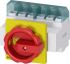 SENTRON, Lasttrennschalter 3LD, Not-Aus-Schalter, 6- polig, Iu: 25 A, Betriebsleistung / bei AC-23 A bei 400V: 9,5 kW, Frontbefestigt, Drehantrieb, rot/gelb, 4-Loch Befestigung der Handhabe Haupt- und NOT-AUS-Schalter SENTRON 3LD2 für das sichere Abschalten von Lasten in vielen Bereichen, z.B. für Drehstrommotoren, Klima- und Lüftungsanlagen, in Be- und Verarbeitungsmaschinen des Maschinen- und Förderanlagenbaus, in der chemischen oder in der Nahrungsmittel- und Getränkeindustrie. Modularer Aufbau, schnelle einfache Montage von Hilfsschaltern, N-PE-Klemme oder 4. Pol. Optimale Netztrennung von 16 A bis 250 A durch Abschließbarkeit des Drehantriebes. Schutzart bis IP 65 mit gekapseltem Gehäusefür Anwendungen im Freien. Vielseitig und weltweit einsetzbar dank internationaler IEC-, UL-, CCC- sowie Schiffbau-Approbationen. Die Haupt- und NOT-AUS-Schalter 3LD sind in vielfältigen Varianten erhältlich für Frontbefestigung, Montageplatte, Hutschiene oder Verteilereinbau, wahlweise mit Direkt- oder Türkupplungs-Drehantrieb. Bei 3LD2 sind auch Varianten für Gleichstromanwendungen verfügbar. Haupt- und NOT-AUS-Schalter 3LD - Durchgängige Sicherheit für Anwender und Systeme.