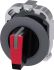 Knebelschalter, beleuchtbar, 30 mm, rund, Metall, matt, rot, Knebel, kurz, Frontring für flachen Einbau, 3 Schaltstellungen I>O