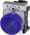 Leuchtmelder, 22 mm, rund, Metall, hochglanz, blau, Linse, glatt, mit Halter, LED-Modul MIT INTEGRIERTER LED AC/DC 24V, Federzuganschluss Leuchtmelder SIRIUS ACT zur Signalisierung von Schaltzuständen oder Störungen in Anlagen mit brillianter Leuchtkraft dank energieeffizienter LED-Technologie. Unter dem Markennamen SIRIUS ACT bietet Siemens ein einzigartiges Portfolio an Befehls- und Meldegeräten mit weltweiten Produkt-Zulassungen in drei modernen Designreihen aus robustem Echtmetall und hochwertigem Kunststoff.Das innovative Aufschnappkonzept vereinfacht die Montage so weit, dass dafür nur eine Hand und kein Spezialwerkzeug erforderlich ist. Als Montagebohrungen genügen nutfreie Löcher, da bereits ein 100%iger Verdrehschutz integriert ist.Dank der durchgängig hohen Schutzart sind die robusten Geräte industrietauglich und für den Außeneinsatz geeignet. Sogar die Reinigung mit Hochdruckstrahl ist möglich. Weder Staub, Öle noch aggressive Laugen können den zuverlässigen Betrieb stören.Neben der Standardverdrahtung können die meisten Geräte auch über PROFINET, AS-Interface oder IO-Link an die Steuerung angebunden werden. Damit reduzieren Sie Ihren Verdrahtungsaufwand, minimieren Fehlerquellen und gewinnen mehr Flexibilität.Komfortabel unterstützt der grafische Online-Konfigurator bei Auswahl und Bestellung von Einzelgeräten, Gehäusen und Beschriftungen. Umfangreiche Dokumentation (z.B. Handbuch, 3D-Daten, Anschlussdiagramm) ist verfügbar. Lieferbare Ausführungen: mehrere Farben, verschiedene Spannungsvarianten. Hinweis: Komplettgerät, Lieferung inklusive Halter und Module. SIRIUS ACT - Performance in Action beim Befehlen und Melden. Einfach montiert, einfach stark, einfach perfekt.