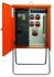 Bestückung: 2 Kabeleinführungen M 63 mit Zugentlastungen, 1 Hauptsicherung als NH 00-Lasttrennschalter mit Sicherung 3-pol. (abgesichert mit 63 A), absperrbar, Zuleitung L1, L2, L3,N + PE/PEN mit Aderendhülsenanschluss bis max. 2x5x35 mm², 1 FI-Schalter 63/4/0,03 A, Typ B, 2 CEE-Steckdose 5/16 A, 400 V, 2 Automaten C 16 A, 3-pol., 1 CEE-Steckdose 5/32 A, 400 V, 1 Automat C 32 A, 3-pol., 1 CEE-Steckdose 5/63 A, 400 V, Vorsicherung über Hauptsicherung, 6 Schutzkontaktsteckdosen 3/16 A, 230 V, 3 Automaten C 16 A, 1-pol., Gewicht: ca. 40 kg