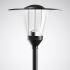 Dekorative LED-Klassik-Kegelleuchte für Mastaufsatzmontage. Mit intelligentem Label zum schnellen Aufrufen von Leuchten-Informationen mittels QR-Code. Mit autarker Leistungsreduzierung über integrierte Auswerteelektronik. Reduzierung des Leuchtenlichtstroms auf 50 % für einen Zeitraum von 7 Stunden (-2h/+5h), verteilt um einen täglich neu bestimmten Mittelpunkt der Einschaltdauer. Für Mastzopf Ø 76 mm. Mittels separat zu bestellender Reduzierstücke auch zur Montage an Masten mit Zopf Ø 60 mm geeignet. Passender Mast auf Anfrage. Optisches System in Multi-Lens-Technologie (MLT) ausgeführt. Leuchtenoptik bestehend aus hocheffizienten, UV- und temperaturbeständigen Linsensystemen. Mit asymmetrisch breit strahlender Lichtstärkeverteilung. Der nachträgliche Einbau einer rückseitigen / seitlichen Abschirmung ist als separat zu bestellendes Zubehör möglich. Leuchtenlichtstrom und Lichtfarbe fest eingestellt, mit Lichtstromkonstanthaltung am Ende der Lebensdauer (CLO). LED-System bestehend aus 3 LED-Modulen. Bemessungslichtstrom 2600 lm, Bemessungsleistung 22 W, maximale Leuchten-Lichtausbeute 118 lm/W. Lichtfarbe warmweiß, ähnlichste Farbtemperatur (CCT) 3000 K, allgemeiner Farbwiedergabeindex (CRI) Ra > 70. Farborttoleranz (initial MacAdam) = 5 SDCM. Weitere LED-Lichtfarben auf Anfrage verfügbar. Die Lichtquelle ist entsprechend der Ökodesign-Anforderungen (VO (EU) 2019/2020) austauschbar. Ausführungen mit 3-Stufen-Schalter zur Einstellung unterschiedlicher Lichtströme auf Anfrage. Leuchtenkörper aus Aluminium-Druckguss, Leuchtendach aus korrosionsbeständigem Aluminium, hochwetterfest pulverbeschichtet. Farbe Leuchtenkörper und Leuchtendach außen tiefschwarz, ähnlich RAL 9005. Leuchtendach innen weiß pulverbeschichtet. Seewetter geeignete Beschichtung auf Anfrage. Abschlusszylinder aus hochschlagzähem PMMA, klar. Leuchtenabdeckung in selbstarretierende Service-Position hochschiebbar. Mast auf Anfrage erhältlich. Schutzklasse (EN 61140): II, Schutzart (DIN EN 60529): IP23, Schutzart Lampenraum: IP65. Stoßfestigkeitsgrad nach IEC 62262: IK04. Zulässige Umgebungstemperatur (ta): 25 °C bis . Windangriffsfläche fw 0,470 m2. Gewicht: 10,9 kg. Mit angeschlossener, 6000 mm langer Zuleitung. Mit isoliertem Stützpunkt für den Erdleiter. Mit elektronischem Betriebsgerät, schaltbar Das Betriebsgerät ist entsprechend der Ökodesign-Anforderungen (VO (EU) 2019/2020) austauschbar. Mit angeschlossener, 6000 mm langer Zuleitung. Mit isoliertem Stützpunkt für den Erdleiter. Elektroblock mit allen elektrischen Komponenten werkzeuglos austauschbar. Stoßspannungsfestigkeit Differential Mode / Common Mode: 6 kV / 10 kV. Das Produkt erfüllt die grundlegenden Anforderungen der anwendbaren EU-Richtlinien und des Produktsicherheitsgesetzes und trägt die CE-Kennzeichnung. Zusätzlich ist die Leuchte durch eine unabhängige Prüfstelle ENEC-zertifiziert. Leuchte 10 Jahre, Ersatzteile (LED-Modul, Betriebsgerät, optisches System) 15 Jahre nach Rechnungsdatum unter Vorbehalt vertretbarer Änderungen, die dem Fortschritt dienen, verfügbar.