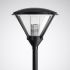 Dekorative Kegelleuchte für Mastaufsatzmontage. Mit intelligentem Label zum schnellen Aufrufen von Leuchten-Informationen mittels QR-Code. Mit autarker Leistungsreduzierung über integrierte Auswerteelektronik. Reduzierung des Leuchtenlichtstroms auf 50 % für einen Zeitraum von 7 Stunden (-2h/+5h), verteilt um einen täglich neu bestimmten Mittelpunkt der Einschaltdauer. Für Mastzopf Ø 76 mm. Mittels separat zu bestellender Reduzierstücke auch zur Montage an Masten mit Zopf Ø 60 mm geeignet. Passender Mast auf Anfrage. Optisches System aus hochglänzendem, eloxiertem Aluminium. Mit symmetrisch breit strahlender Lichtstärkeverteilung. Leuchtenlichtstrom und Lichtfarbe fest eingestellt, mit Lichtstromkonstanthaltung am Ende der Lebensdauer (CLO). Bemessungslichtstrom 2000 lm, Bemessungsleistung 24 W, maximale Leuchten-Lichtausbeute 83 lm/W. Lichtfarbe neutralweiß, ähnlichste Farbtemperatur (CCT) 4000 K, allgemeiner Farbwiedergabeindex (CRI) Ra > 80. Farborttoleranz (initial MacAdam) = 3 SDCM. Die Lichtquelle ist entsprechend der Ökodesign-Anforderungen (VO (EU) 2019/2020) austauschbar. Leuchtenkörper aus Aluminium-Druckguss, Leuchtendach aus korrosionsbeständigem Aluminium, hochwetterfest pulverbeschichtet. Farbe schwarz (ähnlich RAL 9005). Seewetter geeignete Beschichtung auf Anfrage. Leuchtendach innen weiß pulverbeschichtet. Abdeckung aus hochschlagzähem PMMA in Kegelform, klar. Leuchtenabdeckung in selbstarretierende Service-Position hochschiebbar. Mast auf Anfrage erhältlich. Schutzklasse (EN 61140): II, Schutzart (DIN EN 60529): IP23, Schutzart Lampenraum: IP65. Stoßfestigkeitsgrad nach IEC 62262: IK04. Zulässige Umgebungstemperatur (ta): 25 °C bis . Windangriffsfläche fw 0,360 m2. Gewicht: 7,6 kg. Mit elektronischem Betriebsgerät, schaltbar Das Betriebsgerät ist entsprechend der Ökodesign-Anforderungen (VO (EU) 2019/2020) austauschbar. Elektroblock mit allen elektrischen Komponenten werkzeuglos austauschbar. Stoßspannungsfestigkeit Differential Mode / Common Mode: 6 kV / 10 kV. Das Produkt erfüllt die grundlegenden Anforderungen der anwendbaren EU-Richtlinien und des Produktsicherheitsgesetzes und trägt die CE-Kennzeichnung. Zusätzlich ist die Leuchte durch eine unabhängige Prüfstelle ENEC-zertifiziert. Leuchte 10 Jahre, Ersatzteile (LED-Modul, Betriebsgerät, optisches System) 15 Jahre nach Rechnungsdatum unter Vorbehalt vertretbarer Änderungen, die dem Fortschritt dienen, verfügbar.