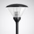 Dekorative Klassik-Kegelleuchte für Mastaufsatzmontage. Mit intelligentem Label zum schnellen Aufrufen von Leuchten-Informationen mittels QR-Code. Mit autarker Leistungsreduzierung über integrierte Auswerteelektronik. Reduzierung des Leuchtenlichtstroms auf 50 % für einen Zeitraum von 7 Stunden (-2h/+5h), verteilt um einen täglich neu bestimmten Mittelpunkt der Einschaltdauer. Für Mastzopf Ø 76 mm. Mittels separat zu bestellender Reduzierstücke auch zur Montage an Masten mit Zopf Ø 60 mm geeignet. Passender Mast auf Anfrage. Optisches System aus hochglänzendem, eloxiertem Aluminium. Mit symmetrisch breit strahlender Lichtstärkeverteilung. Leuchtenlichtstrom und Lichtfarbe fest eingestellt, mit Lichtstromkonstanthaltung am Ende der Lebensdauer (CLO). Bemessungslichtstrom 2200 lm, Bemessungsleistung 28 W, maximale Leuchten-Lichtausbeute 79 lm/W. Lichtfarbe neutralweiß, ähnlichste Farbtemperatur (CCT) 4000 K, allgemeiner Farbwiedergabeindex (CRI) Ra > 80. Farborttoleranz (initial MacAdam) = 3 SDCM. Die Lichtquelle ist entsprechend der Ökodesign-Anforderungen (VO (EU) 2019/2020) austauschbar. Leuchtenkörper aus Aluminium-Druckguss, Leuchtendach aus korrosionsbeständigem Aluminium, hochwetterfest pulverbeschichtet. Farbe Leuchtenkörper und Leuchtendach außen tiefschwarz, ähnlich RAL 9005. Leuchtendach innen weiß pulverbeschichtet. Seewetter geeignete Beschichtung auf Anfrage. Abdeckung aus hochschlagzähem PMMA in Kegelform, klar. Leuchtenabdeckung in selbstarretierende Service-Position hochschiebbar. Mast auf Anfrage erhältlich. Schutzklasse (EN 61140): II, Schutzart (DIN EN 60529): IP23, Schutzart Lampenraum: IP65. Stoßfestigkeitsgrad nach IEC 62262: IK04. Zulässige Umgebungstemperatur (ta): 25 °C bis . Windangriffsfläche fw 0,360 m2. Gewicht: 8,4 kg. Mit elektronischem Betriebsgerät, schaltbar. Das Betriebsgerät ist entsprechend der Ökodesign-Anforderungen (VO (EU) 2019/2020) austauschbar. Elektroblock mit allen elektrischen Komponenten werkzeuglos austauschbar. Stoßspannungsfestigkeit Differential Mode / Common Mode: 6 kV / 10 kV. Das Produkt erfüllt die grundlegenden Anforderungen der anwendbaren EU-Richtlinien und des Produktsicherheitsgesetzes und trägt die CE-Kennzeichnung. Zusätzlich ist die Leuchte durch eine unabhängige Prüfstelle ENEC-zertifiziert. Leuchte 10 Jahre, Ersatzteile (LED-Modul, Betriebsgerät, optisches System) 15 Jahre nach Rechnungsdatum unter Vorbehalt vertretbarer Änderungen, die dem Fortschritt dienen, verfügbar.