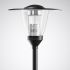 Dekorative LED-Klassik-Kegelleuchte für Mastaufsatzmontage. Mit intelligentem Label zum schnellen Aufrufen von Leuchten-Informationen mittels QR-Code. Mit Leistungsreduzierung über Steuerphase. Das Abschalten einer Steuerphase bewirkt eine Einstellung des Leuchtenlichtstroms auf 50 %. Für Mastzopf Ø 76 mm. Mittels separat zu bestellender Reduzierstücke auch zur Montage an Masten mit Zopf Ø 60 mm geeignet. Passender Mast auf Anfrage. Optisches System aus hochglänzendem, eloxiertem Aluminium. Mit asymmetrisch breit strahlender Lichtstärkeverteilung. Leuchtenlichtstrom und Lichtfarbe fest eingestellt, mit Lichtstromkonstanthaltung am Ende der Lebensdauer (CLO). Mit LED-System Bemessungslichtstrom 2000 lm, Bemessungsleistung 27 W, maximale Leuchten-Lichtausbeute 74 lm/W. Lichtfarbe warmweiß, ähnlichste Farbtemperatur (CCT) 3000 K, allgemeiner Farbwiedergabeindex (CRI) Ra > 80. Farborttoleranz (initial MacAdam) = 5 SDCM. Die Lichtquelle ist entsprechend der Ökodesign-Anforderungen (VO (EU) 2019/2020) austauschbar. Leuchtenkörper aus Aluminium-Druckguss, Leuchtendach aus korrosionsbeständigem Aluminium, hochwetterfest pulverbeschichtet. Farbe Leuchtenkörper und Leuchtendach außen tiefschwarz, ähnlich RAL 9005. Leuchtendach innen weiß pulverbeschichtet. Seewetter geeignete Beschichtung auf Anfrage. Abschlusszylinder aus hochschlagzähem PMMA, klar. Leuchtenabdeckung in selbstarretierende Service-Position hochschiebbar. Mast auf Anfrage erhältlich. Schutzklasse (EN 61140): II, Schutzart (DIN EN 60529): IP23, Schutzart Lampenraum: IP65. Stoßfestigkeitsgrad nach IEC 62262: IK04. Zulässige Umgebungstemperatur (ta): 25 °C bis . Windangriffsfläche fw 0,470 m2. Gewicht: 7,3 kg. Mit elektronischem Betriebsgerät, schaltbar. Das Betriebsgerät ist entsprechend der Ökodesign-Anforderungen (VO (EU) 2019/2020) austauschbar. Elektroblock mit allen elektrischen Komponenten werkzeuglos austauschbar. Stoßspannungsfestigkeit Differential Mode / Common Mode: 6 kV / 10 kV. Das Produkt erfüllt die grundlegenden Anforderungen der anwendbaren EU-Richtlinien und des Produktsicherheitsgesetzes und trägt die CE-Kennzeichnung. Zusätzlich ist die Leuchte durch eine unabhängige Prüfstelle ENEC-zertifiziert. Leuchte 10 Jahre, Ersatzteile (LED-Modul, Betriebsgerät, optisches System) 15 Jahre nach Rechnungsdatum unter Vorbehalt vertretbarer Änderungen, die dem Fortschritt dienen, verfügbar.