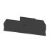 Abschlussplatte für den Berührungsschutz an spannungsführenden Teilen von Reihenklemmen. Die Abschlussplatte wird auch zur optisch erkennbaren Trennung von Stromkreisen eingesetzt, um Verdrahtungsfehler zu vermeiden.