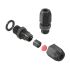 Kabelverschraubung aus Kunststoff zum Abdichten Gehäusen bei der Einführung von Leitungen. Mit Zugentlastung. Geeignet für den Einsatz in explosionsgefährdeten Bereichen.