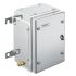 Gehäuse aus Metall für den Einsatz in explosionsgefährdeten Bereichen. Die Montagebohrungen befinden sich außerhalb des Dichtigkeitsbereichs. Eine Wandmontage kann durch Befestigungslöcher oder mit Montagefüßen realisiert werden.