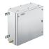Gehäuse aus Metall für den Einsatz in explosionsgefährdeten Bereichen. Die Montagebohrungen befinden sich außerhalb des Dichtigkeitsbereichs. Eine Wandmontage kann durch Befestigungslöcher oder mit Montagefüßen realisiert werden.